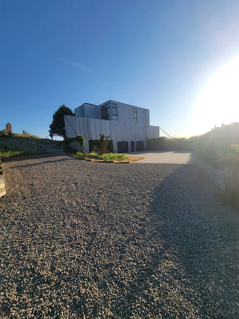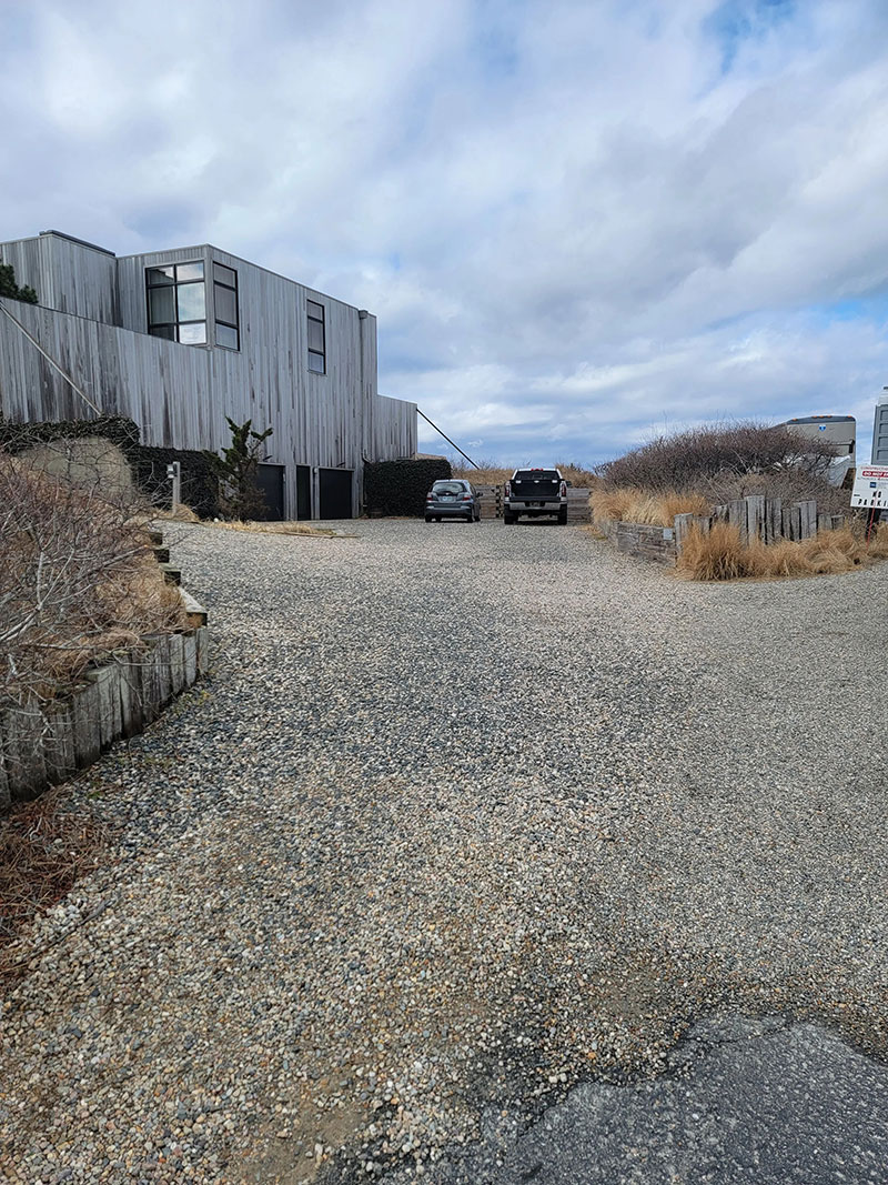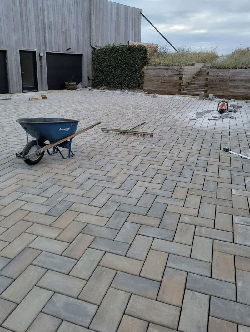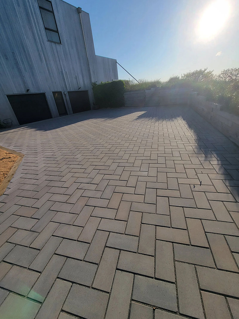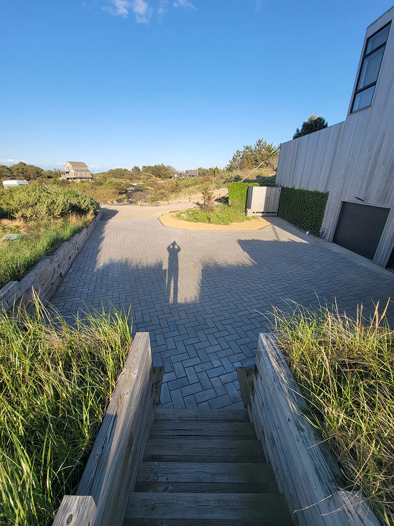 This bayside Truro property received a complete driveway overhaul that turned a patchy gravel surface into a refined and functional entryway. Our team removed the existing mixed-stone gravel, graded the base for proper drainage, and installed new pavers in a timeless herringbone pattern to create a cohesive, elegant finish.